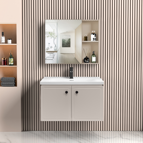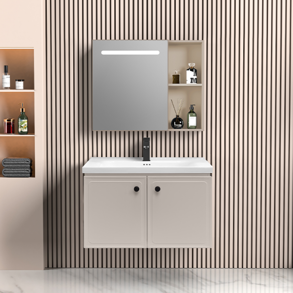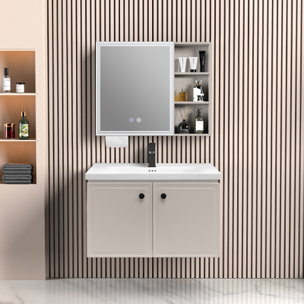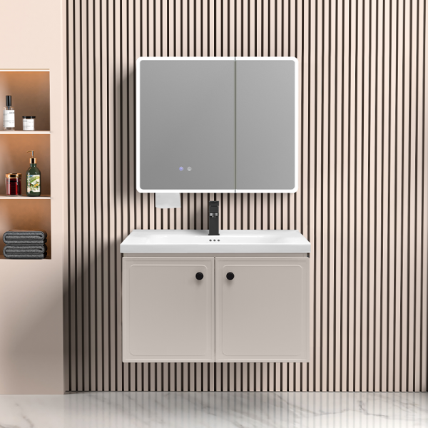French Stainless Steel Door Panel Smart Antifog LED Mirror Cabinet Multi-layer Lockers Bathroom Vanity With Sink